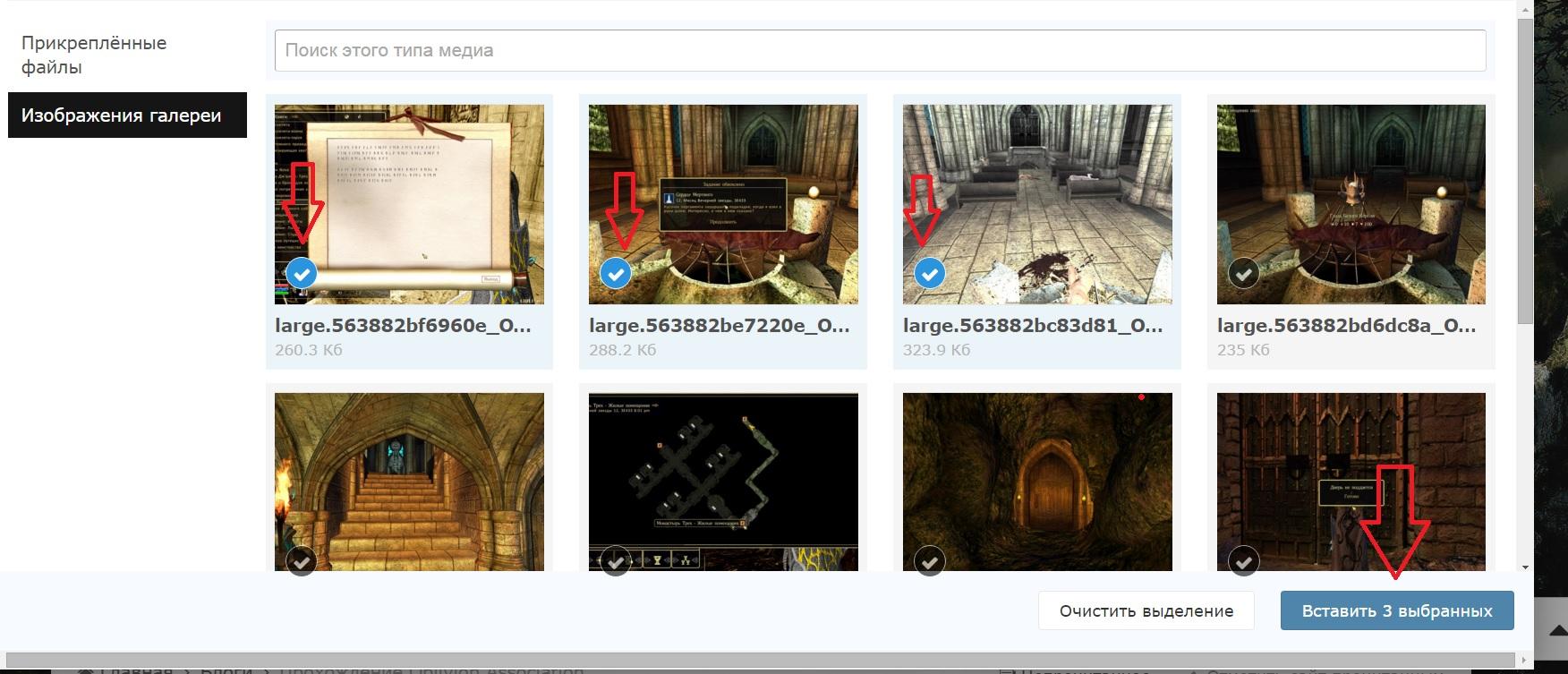 Игорь Опубликовано 3 ноября, 2015 Опубликовано 3 ноября, 2015 (изменено) Что-бы в запись блога добавить картинки из галереи нужно сделать следующие действия: в галерее выбираем свой, предварительно загруженный, альбом нажимаем на кнопочку "Вставить медиа" и выбираем "существующее вложение" выбираем "Изображения галереи" добавляем какие надо изображения, клик по галочке выбирает либо отменяет выбранное, нажимаем кнопочку вставить и картинки добавлены в текст в место расположение курсора в тексте. Для перемещения либо удаления картинки, выделяем ее, кликнув по ней в любом месте. Перемещать по тексту можно удерживая левую кнопочку мыши, либо через команды "вырезать" (CTRL+X) и "вставить" (CTRL+V), удалить через кнопочку DEL или BACKSPASE. Изменено 3 ноября, 2015 пользователем Игорь 3