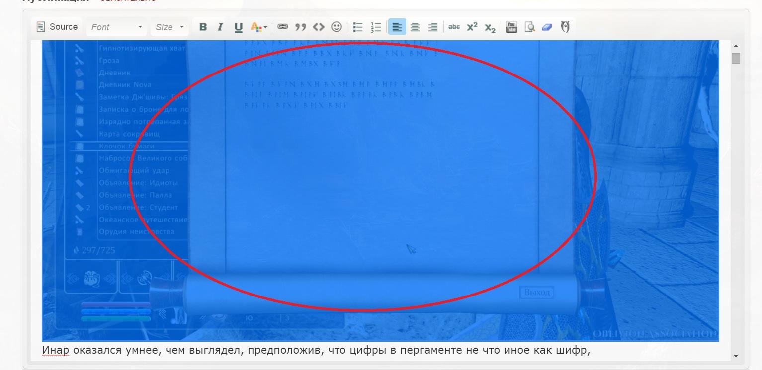 allexa Опубликовано 1 декабря, 2016 Опубликовано 1 декабря, 2016 В связи с добавлением в правила пункта: 8. Запрещается публикация в сообщениях изображений и большого количества текста без использования спойлера. краткая инструкция по работе со спойлером. выделить изображение или часть текста в сообщении и нажать на иконку "глаз" на верхней панели Hide Спойлер The Elder Scrolls IV: Oblivion (дословно — Древние Свитки IV: Забвение) — компьютерная ролевая игра, четвёртая часть в серии The Elder Scrolls. Игра разрабатывалась компанией Bethesda Game Studios и издавалась Bethesda Softworks и дочерней компанией Take-Two Interactive, 2K Games. Oblivion была выпущена 20 марта 2006 для Microsoft Windows и Xbox 360. Версия для PlayStation 3 была выпущена 20 марта 2007 в Северной Америке и 27 апреля в Европе. Специальное издание «Game of the Year Edition» стало доступно для персональных компьютеров 10 сентября 2007 и выпущено на Steam 16 июня 2009. Сразу же после релиза TES IV: Oblivion стала бестселлером в развлекательной индустрии: за первые две недели продаж было реализовано 1,7 миллионов копий этой ролевой игры,[4] а 18 января 2007 года это число составляло уже 3 миллиона. TES IV: Oblivion получила массу положительных отзывов в прессе; её рейтинг для PC-версии на Metacritic, вычисленный на основании пятидесяти четырёх рецензий от авторитетных специализированных изданий, составляет 94 %. К TES IV: Oblivion вышло два крупных официальных аддона: Knights of the Nine (Рыцари Девяти) и Shivering Isles (Дрожащие Острова), а также восемь мелких официальных плагинов, добавляющих новые локации, квесты и возможности. Издание The Elder Scrolls IV: Oblivion Game of the Year Edition, включающее оба аддона, было выпущено осенью 2007 года для персональных компьютеров, Xbox 360 и PlayStation 3. Спойлер 2